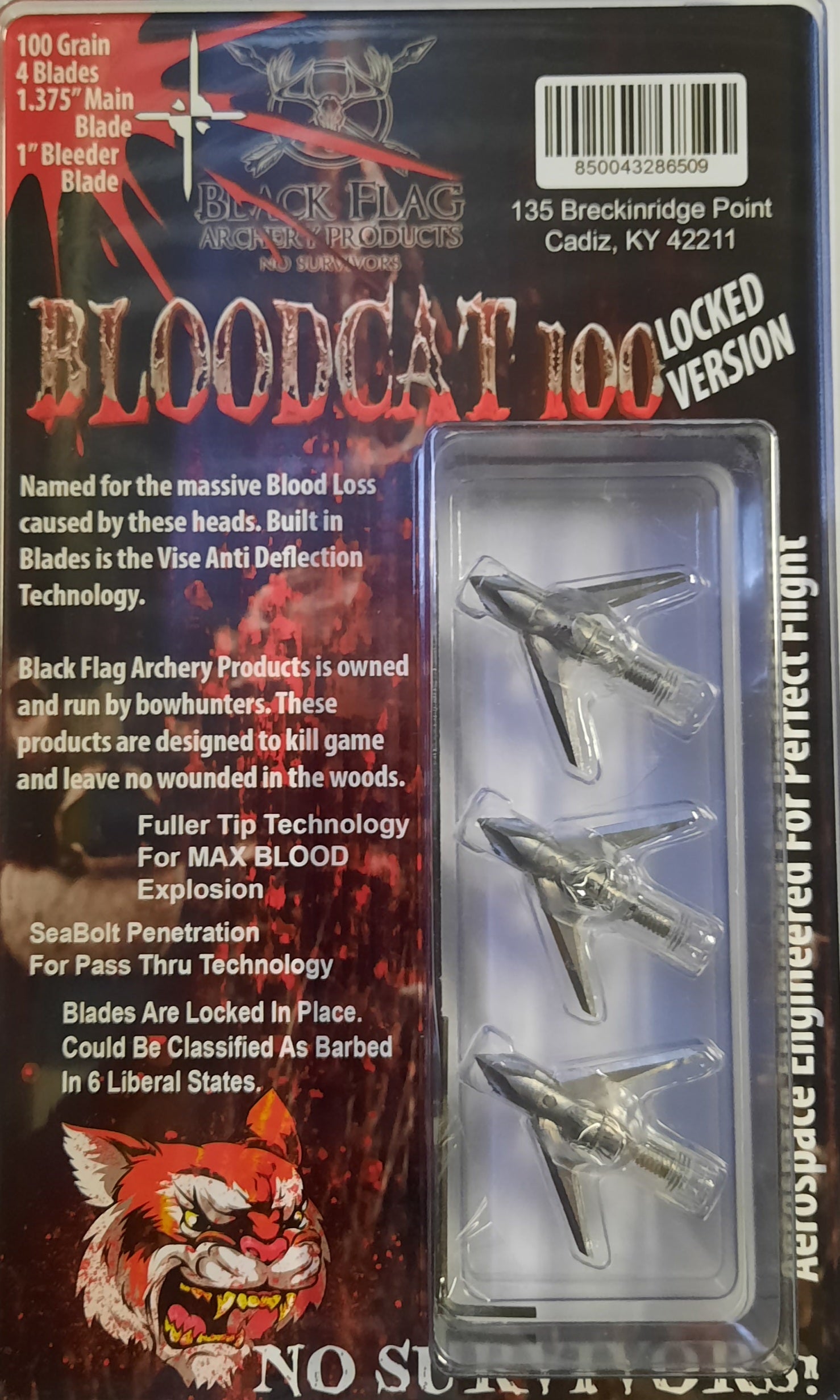 Black Flag Archery - Bloodcat - LOCKED - 100 Grain - 3 Pk